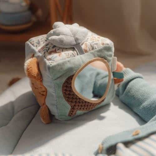 Facile à attraper et à tourner, ce cube sur le thème de la forêt cache même un petit miroir pour que votre enfant puisse se découvrir tout en jouant.