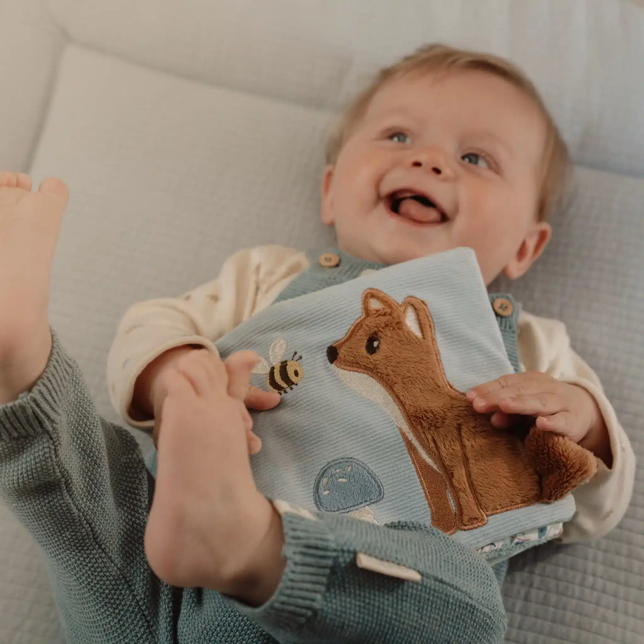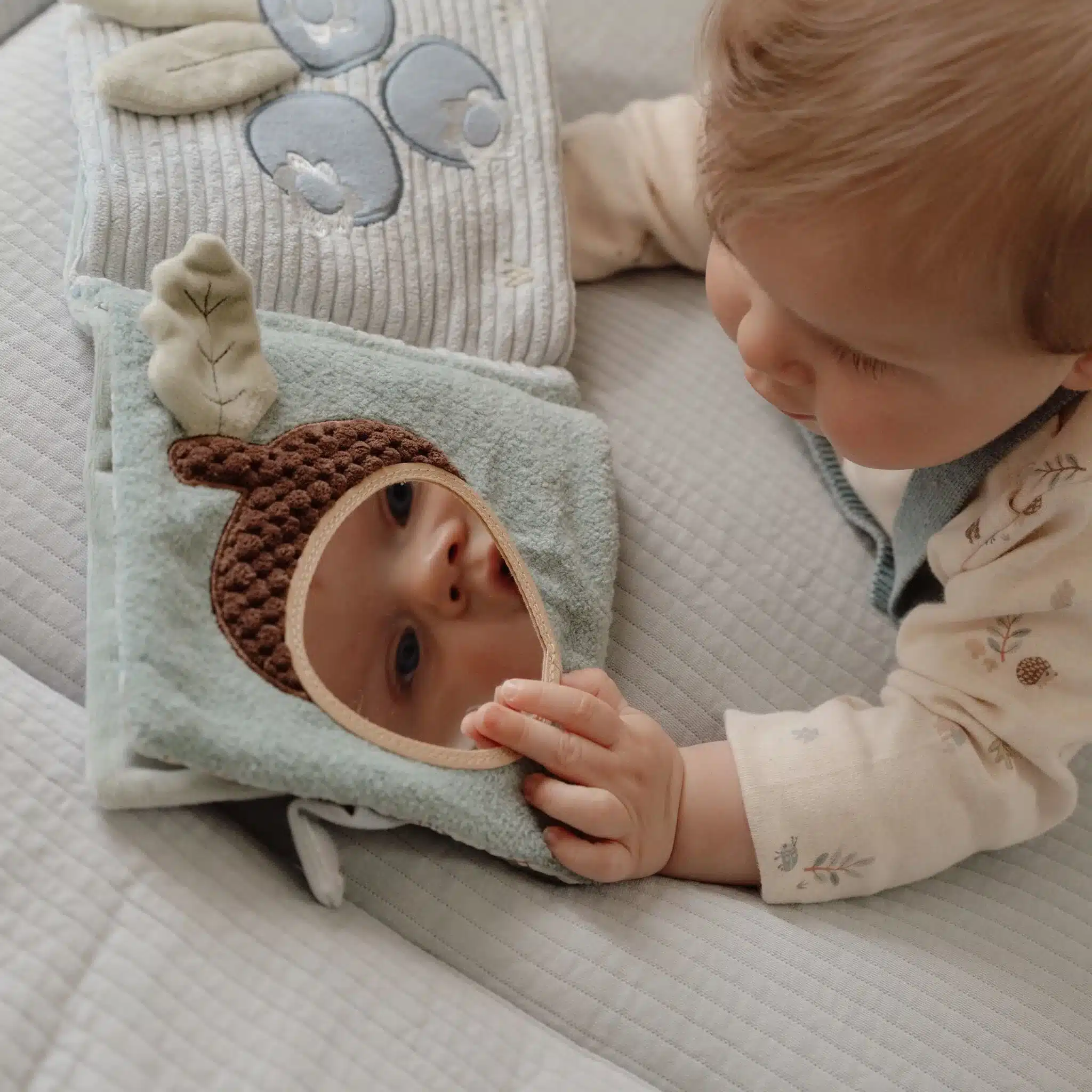 Il y a tant à explorer dans ce livre d’activités tout doux ! Bébé découvrira une multitude de textures ainsi que des surprises : un petit miroir pour s’admirer, un hochet amusant. Les différentes étiquettes à toucher éveillent la curiosité et stimulent les sens, tout en favorisant la coordination œil-main.